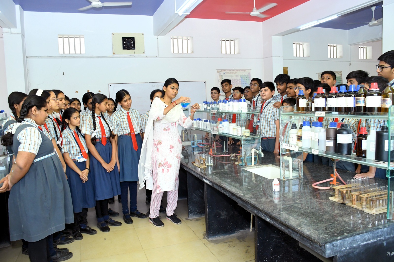 Within the school there is an establishment of well-equipped physics, chemistry and Biology Laboratory. Various equipment, charts, models, apparatus are made available in the school laboratory. NPS provides cleanliness for the experiments with the well-ventilated labs as they are situated on the uppermost floor of the school building.
